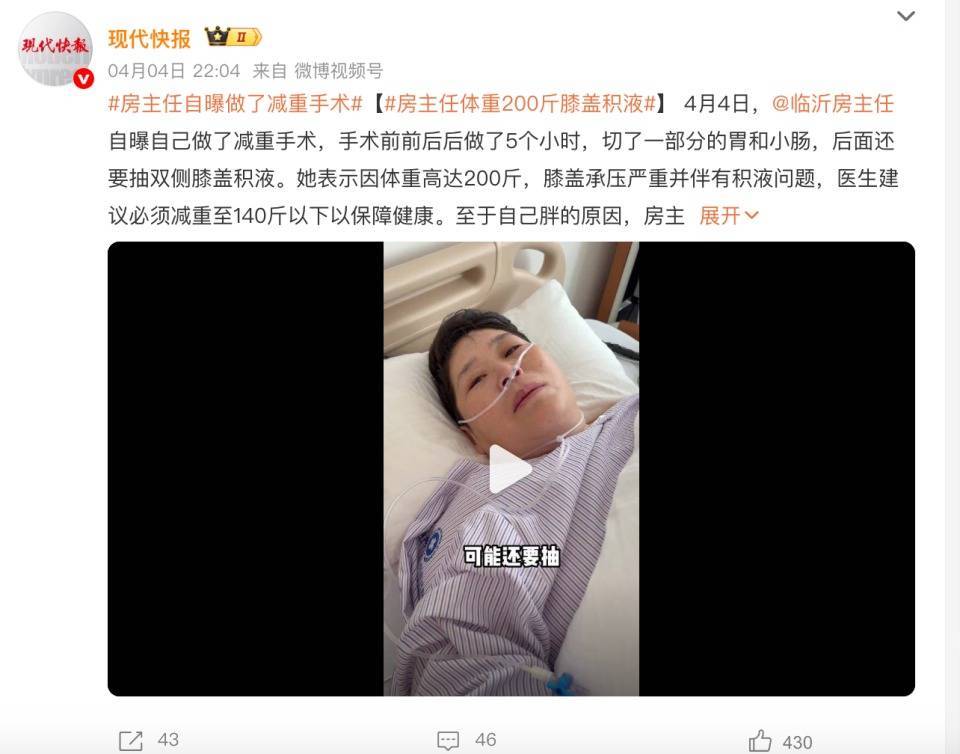 这一切要从她200斤的体重说起。房主任不是没努力过,巡演跑断腿体重纹丝不动,停演一个月反倒胖了20斤。去医院一查才知道,自己的小肠比常人粗一倍,吸收功能强到“喝水都长肉”。更要命的是,肥胖已经引发双侧膝盖积液、半月板撕裂,医生撂下狠话:“减不到140斤,膝盖手术都没法做。”被逼到绝境的她,在4月4日躺上了手术台,5个小时里被切掉2/3的胃和部分小肠。术后的日子简直是“人间炼狱”。每天只能喝流食,看见别人啃鸡腿能馋到流眼泪。前几天没忍住多吃了口米饭,结果胃里像刀割一样疼,蜷在床上打滚到天亮。“现在上秤是轻了12斤,但每一斤都带着血和泪啊!”她对着镜头苦笑,曾经在台上拿体重开玩笑的人,如今连笑都牵扯着伤口疼。云南大学附属医院的专家解释,这种“病理性肥胖”确实罕见,手术是最后的无奈之举,但普通人千万别模仿——毕竟大多数人的胖,真不是“天赋异禀”。